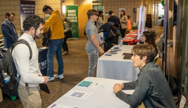 Long-standing event anchored by the Monte Ahuja College of Business answers question with dozens of employers, alumni, internship possibilities